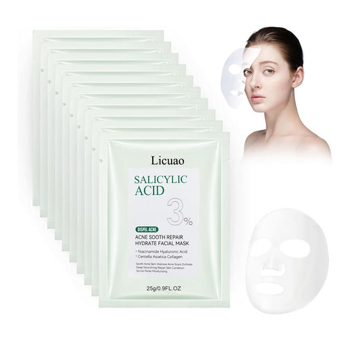 Licuao 10Pcs Salicylic Acid Face Mask Skincare, Deep Collagen Anti Wrinkle Lifting Mask, Hydrating Sheet Masks for Face, Hydrating Overnight Collagen Face Mask, Facial Mask for All Skin Types (green)