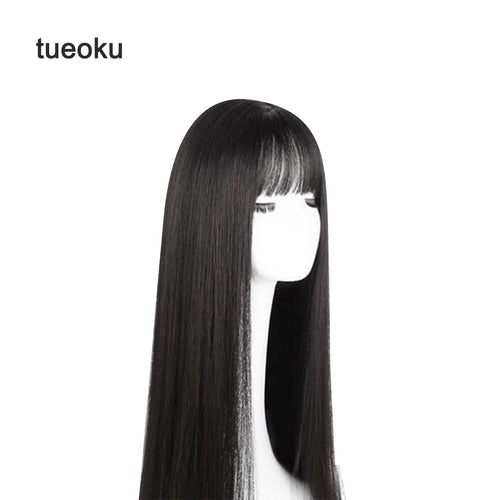 tueoku Black Straight Wig with Bangs for Girl,Long Straight Wig for Women Heat Resistant Fashionable Elegant Synthetic Wig 28.3 Inch