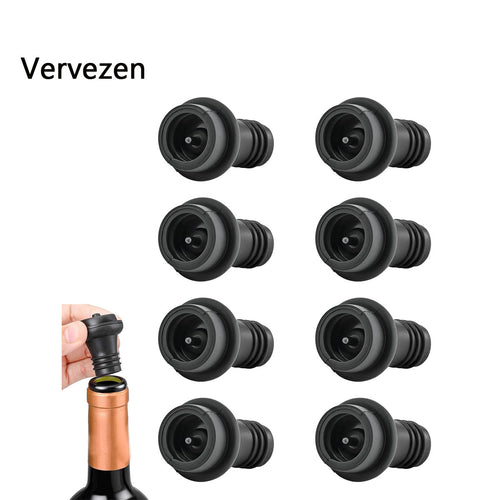 Vervezen 8 Pcs Wine Stopper, Reusable Wine Bottle Stoppers, Stoppers Bottle Silicone, Vacuum Wine Stoppers, Leakproof Wine Stopper Preserver, Suitable for Beer, Champagne, Wine, Sparkling Wine(Black)