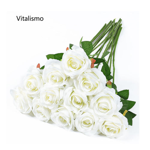 Vitalismo 12PCS Artificial Rose Flowers 19" Tall Artificial Silk Flowers Realistic Roses Bouquet Long Stem Fake Silk Rose for Home Wedding Party Table Decor(Ivory White)