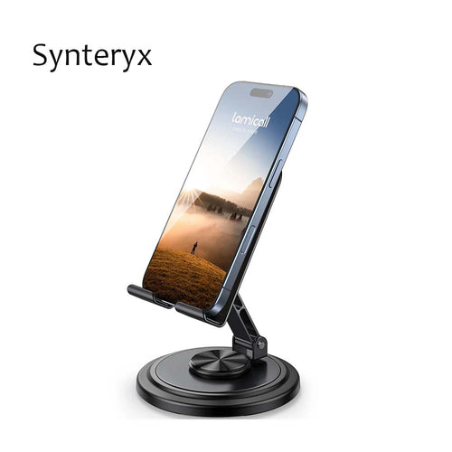 Synteryx Adjustable Phone Stand for Desk - 360 Rotating Foldable Cell Phone Holder Desktop Portable Cellphone Stand, Office Desk Accessories for iPhone 16 15 14 13 Pro Max, 4-10”Smartphones, iPad Mini