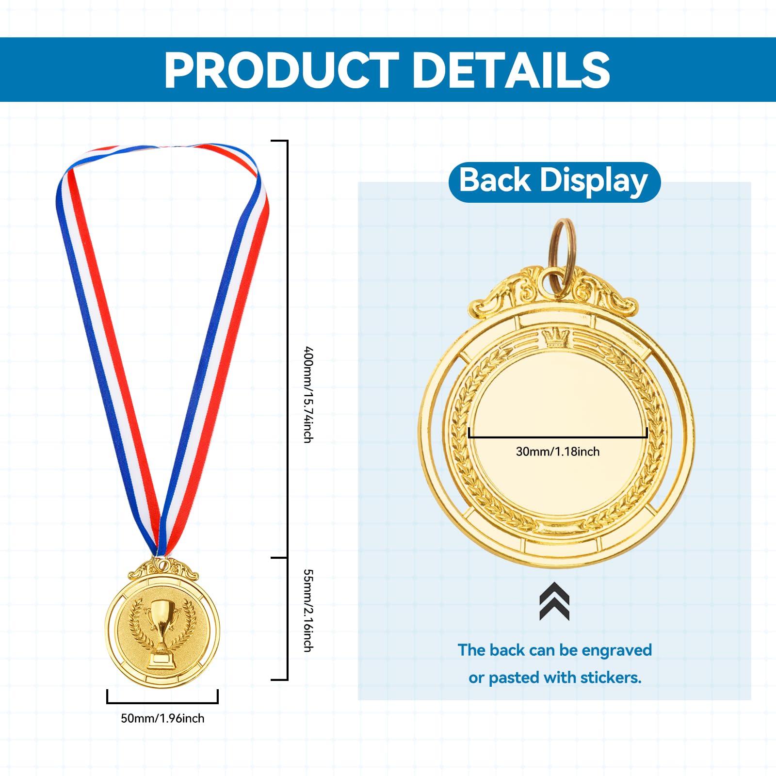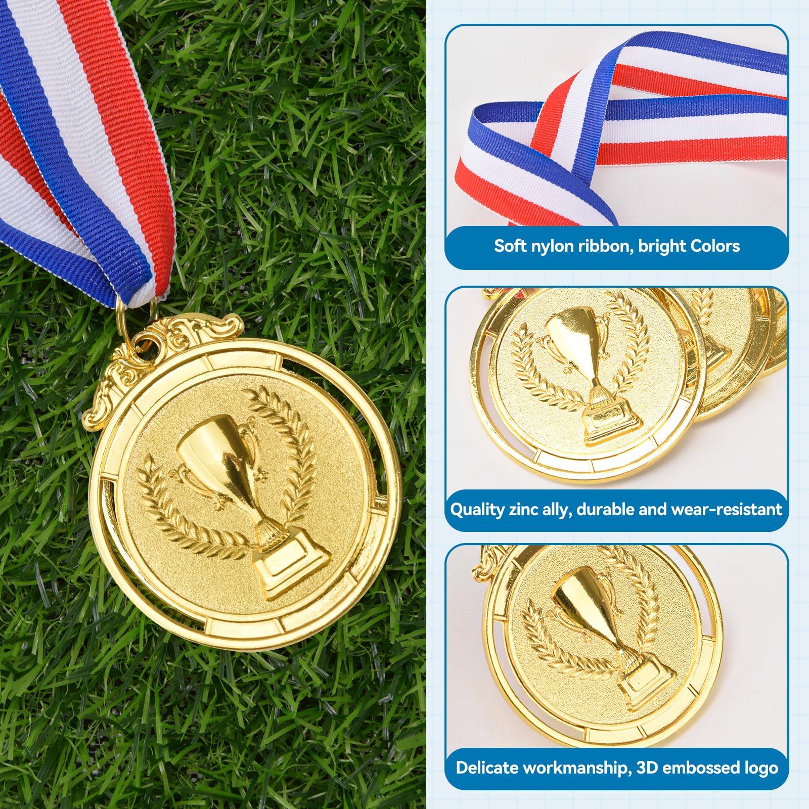 • 【Durable and Sturdy Material Medals for Awards】These medals are made of high-quality zinc alloy material, not plastic, well crafted, sturdy and durable, not easily deformed or worn, with an anti-oxidation layer on the surface, corrosion-resistant, and can be stored for a long time. They have a beautiful appearance.