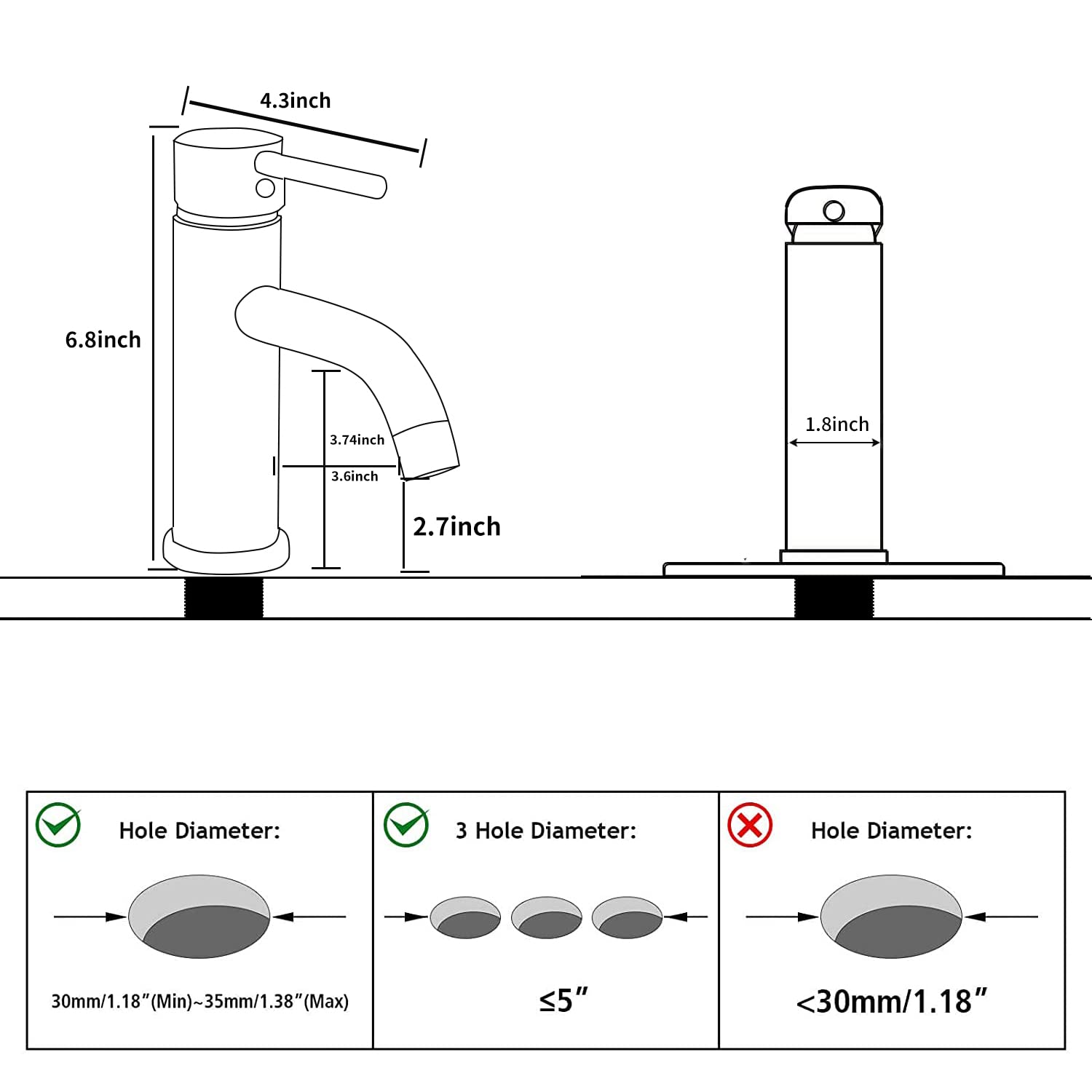 - Easy to operate: Single handle bathroom sink faucet adjusts the size and temperature of the water flow for precise and easy control