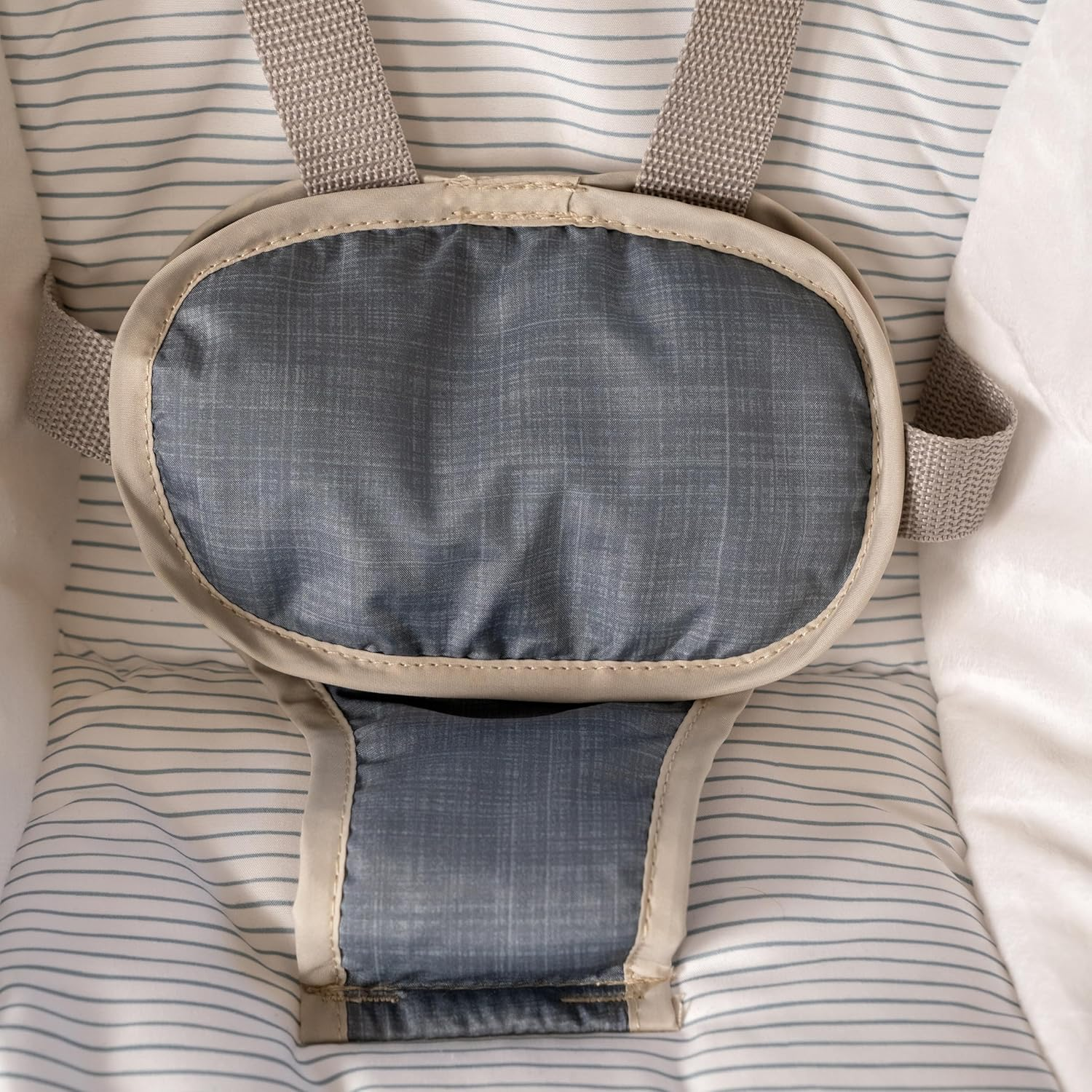 RAXSINYER Swing n Go Portable Swing, Removable Sustainably Sourced Wood Toy Bar, 5-Speed, for Ages 0-9 Months, Up to 20 Pounds, Chambray