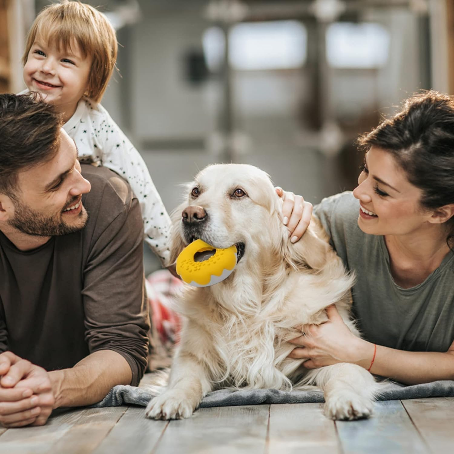 SURSFLY Dog Toys Aggressive Chewers - Interactive Puppy Toys 2 in 1 Treat and Tough Dog Chew Toys for Boredom - Doughnut Shape (Bright Yellow)