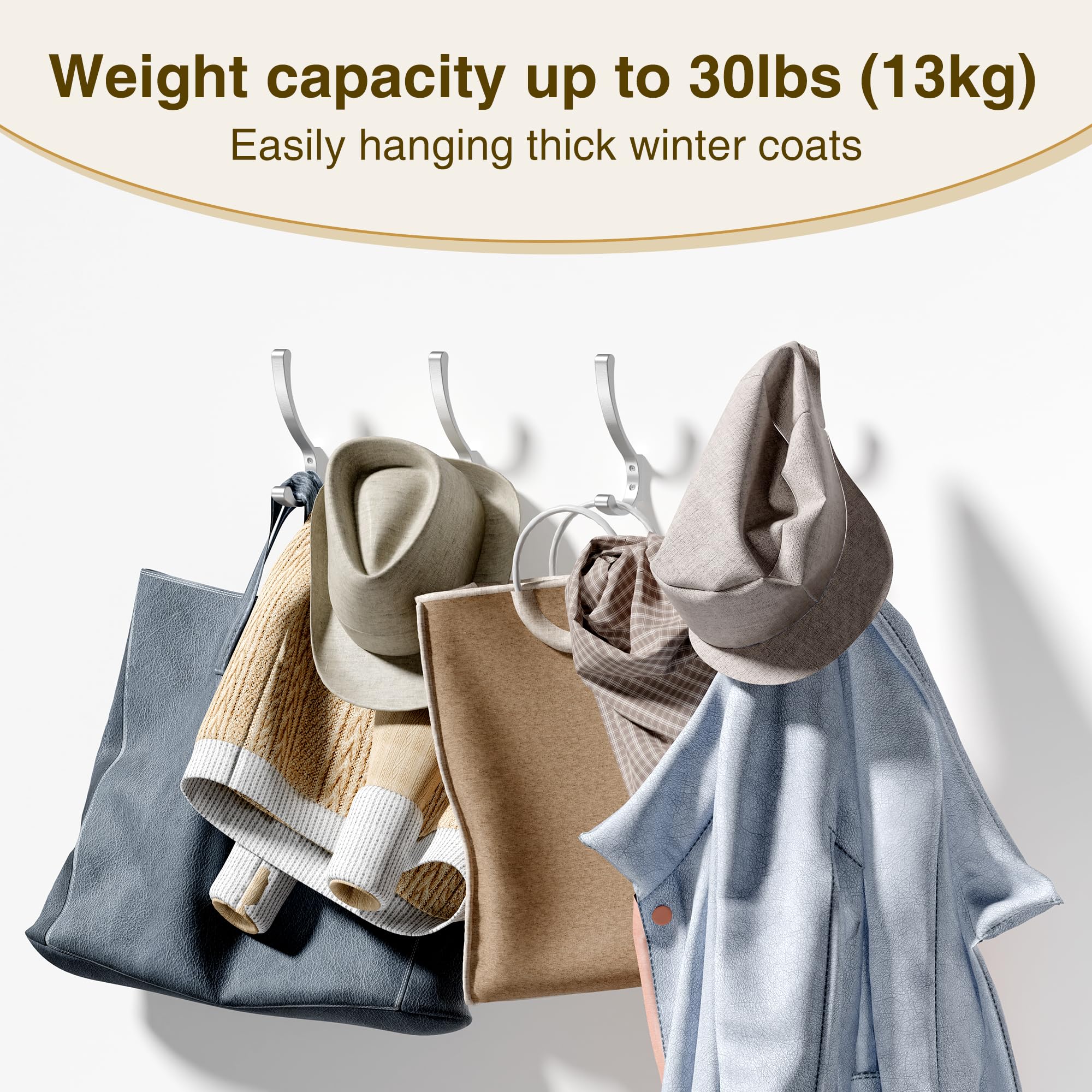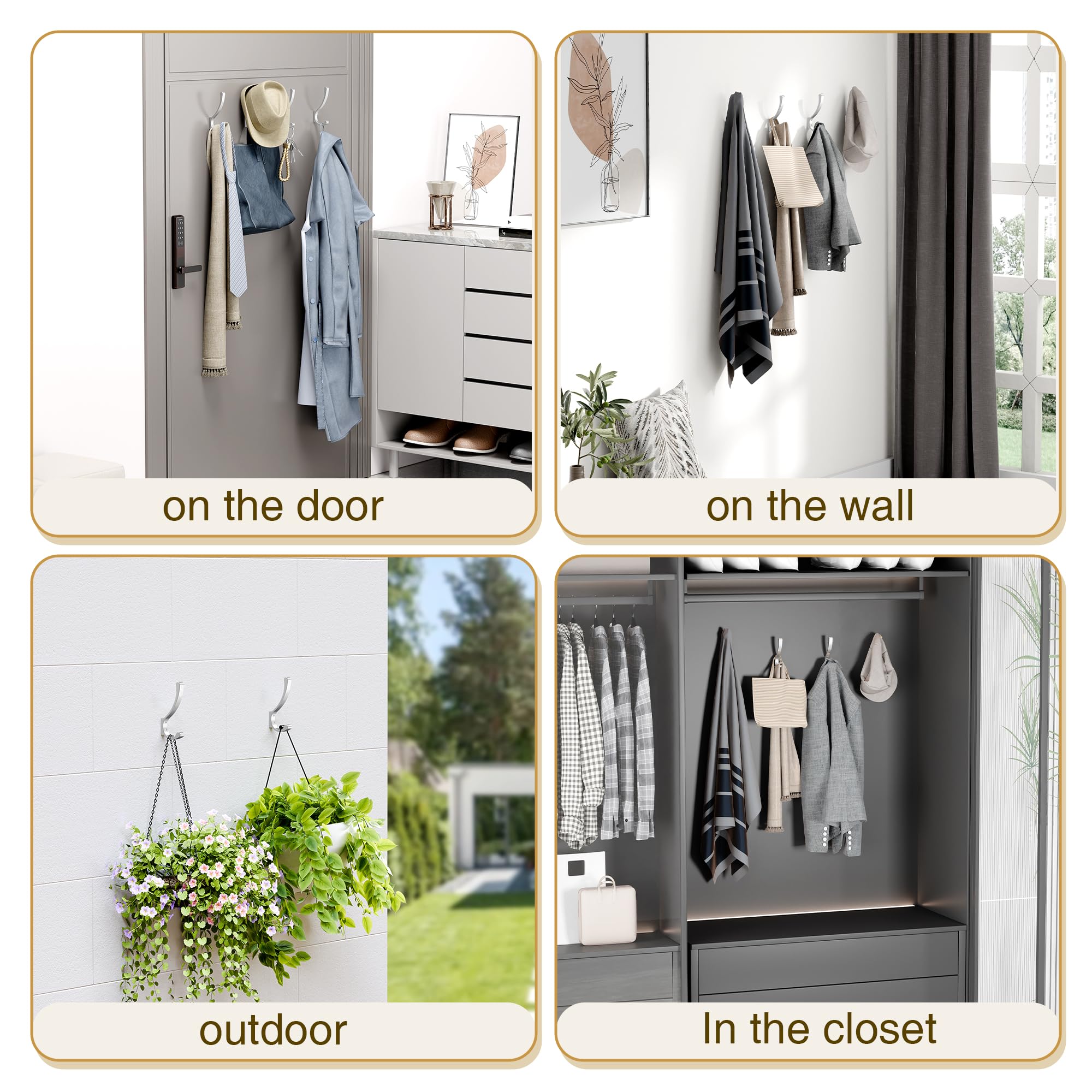 These premium steel over-door hooks feature nickel electroplating with a durable plastic coating, supporting up to 100 lbs. The rubberized plastic sleeves prevent hook wobbling, protect doors from scratches/paint damage, and feature long-lasting, non-yellowing durability for worry-free use.