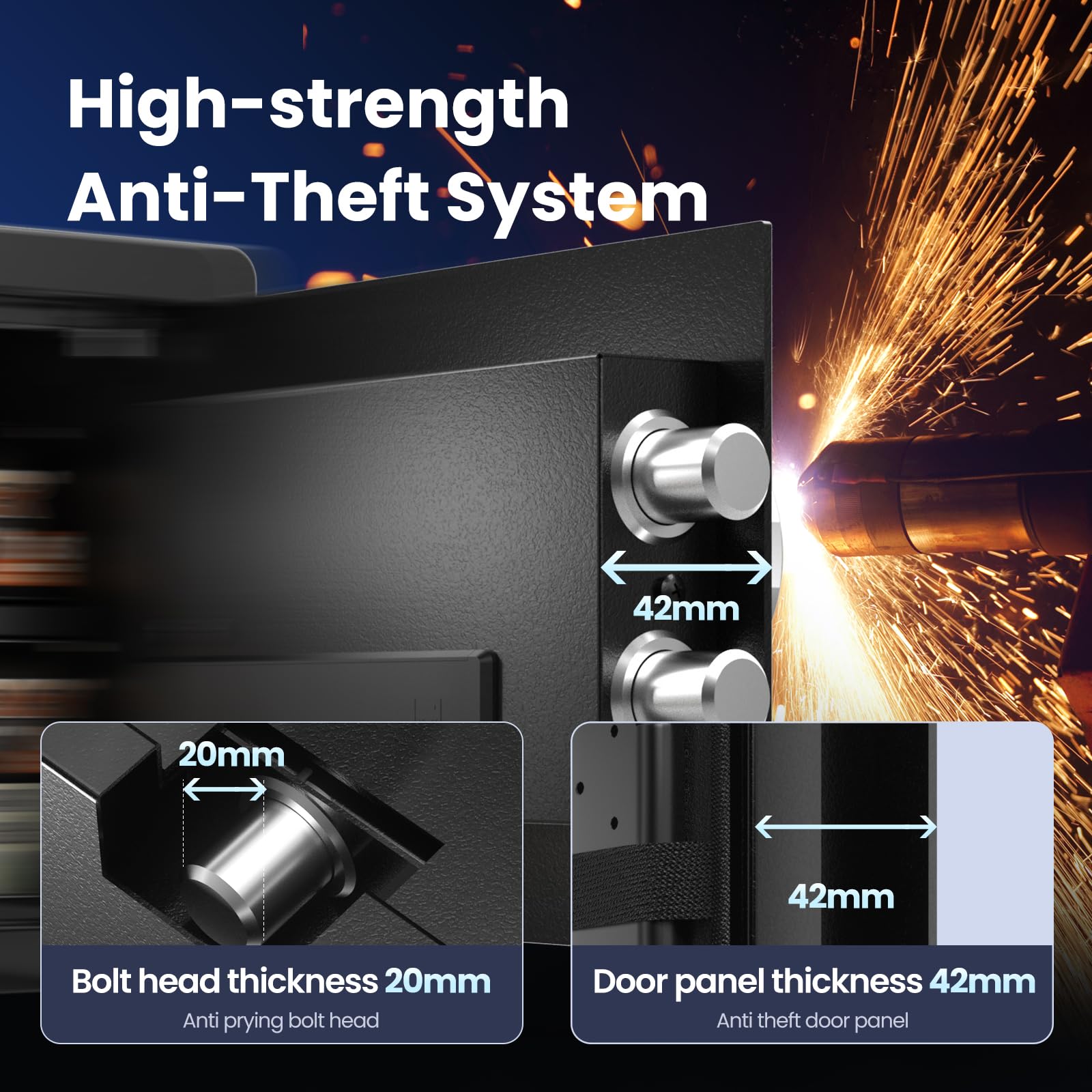 - 【Metal Turntable & Rugged】The security safe has improved the knobs with upgraded metal ones to enhance the quality of the safe, 42mm panel, 2 20mm frame, the usual heavy door and thick walls make the safe very difficult to steal and long-lasting.