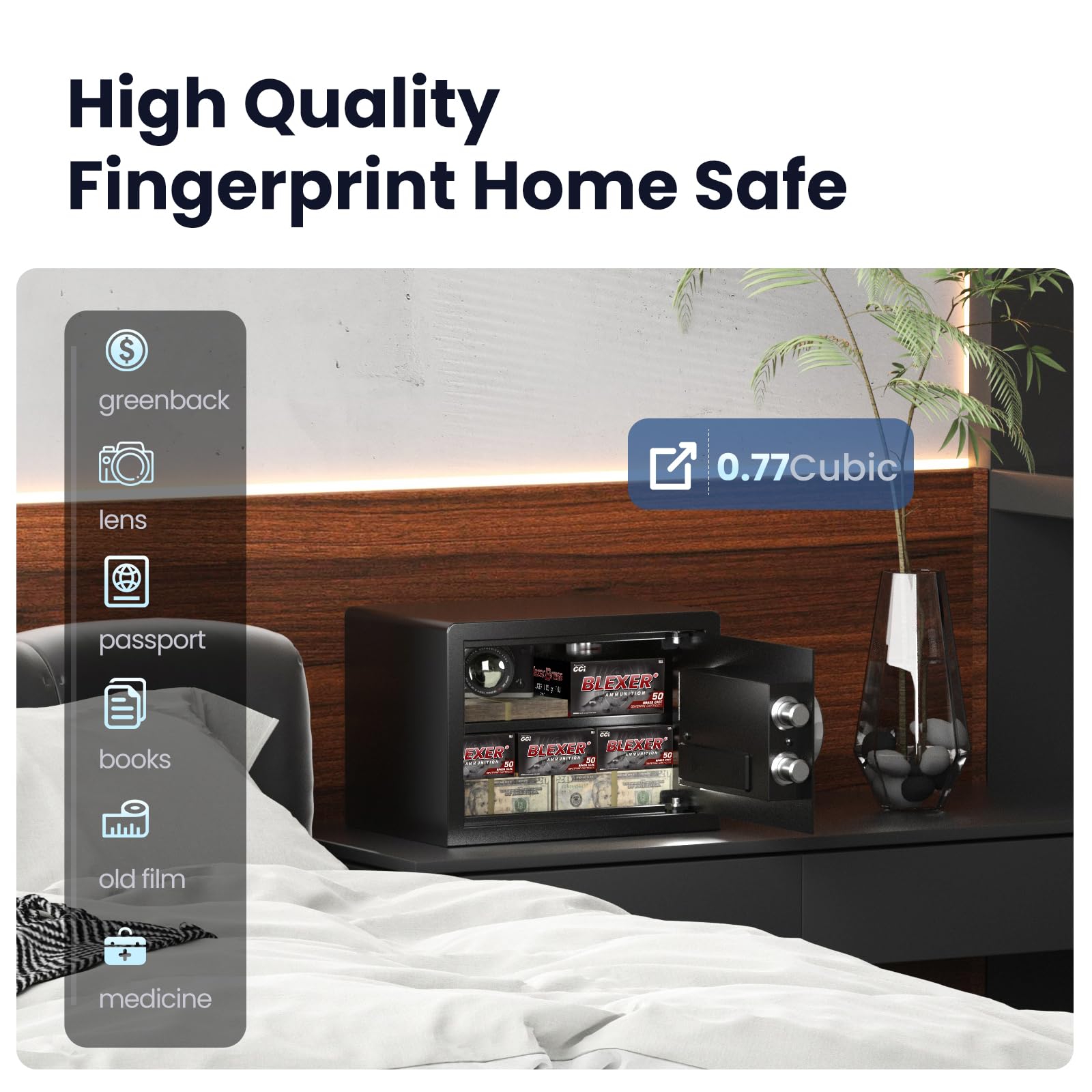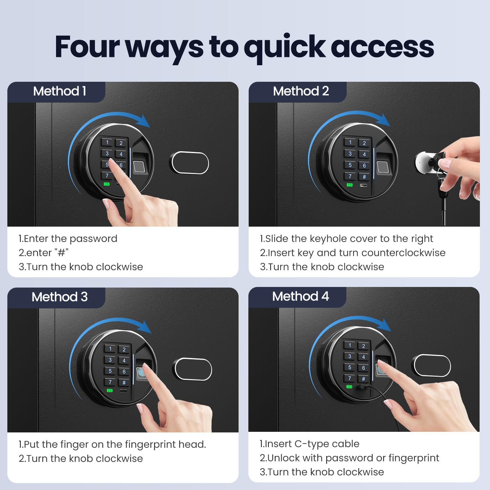 - 【Password & Emergency Key】The password can be set from 3 to 8 digits, offering 6.7 million permutations. The fingerprint safe is perfect as a money safe. Additionally, it comes with two emergency keys in case you forget the password.